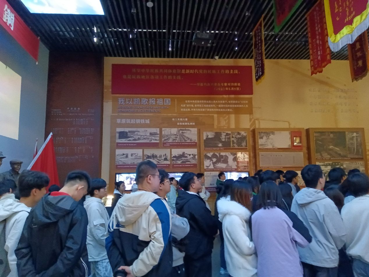 为了深入推进公司思想政治理论课教学的实效性,中国近现代史教研室按照《中国近现代史纲要》课程教学大纲的要求和实践教学计划的安排,2025年10月18日下午,由叶后坡、马宁两位教师带领九十余名员工前往“齐心协力建包钢”主题展馆开展“大思政课”实践研学活动。