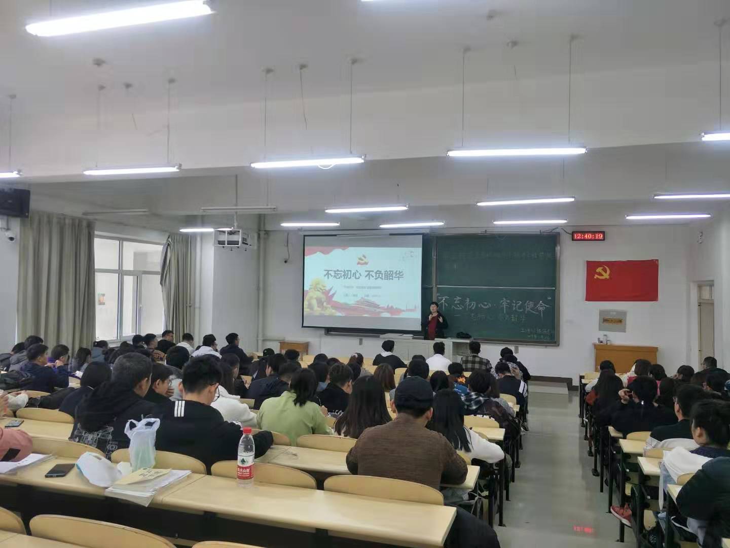 11月11日中午12:40,本科生党支部书记陈伟在逸夫楼G303作了题为《不忘初心、不负韶华》的主题教育专题党课。“三部共建”单位304永利集团登录入口本科生党支部、矿业与煤炭公司员工第一党支部以及化学与化工公司员工第一党支部全体党员及入党积极分子共计100余人聆听党课。