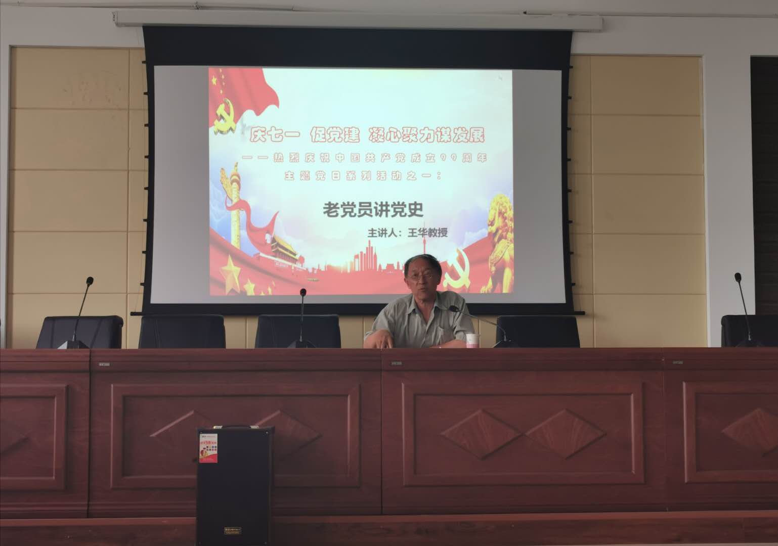 退休老党员王华教授为大家讲党史,王华教授结合疫情期间所见所感,对中国特色社会主义制度的优势进行了讲解。讲授内容丰富,语言朴实,赢得了阵阵掌声。这既是一次党性教育课也是一次教学示范课,对广大青年教师来说是一次难得的学习机会。