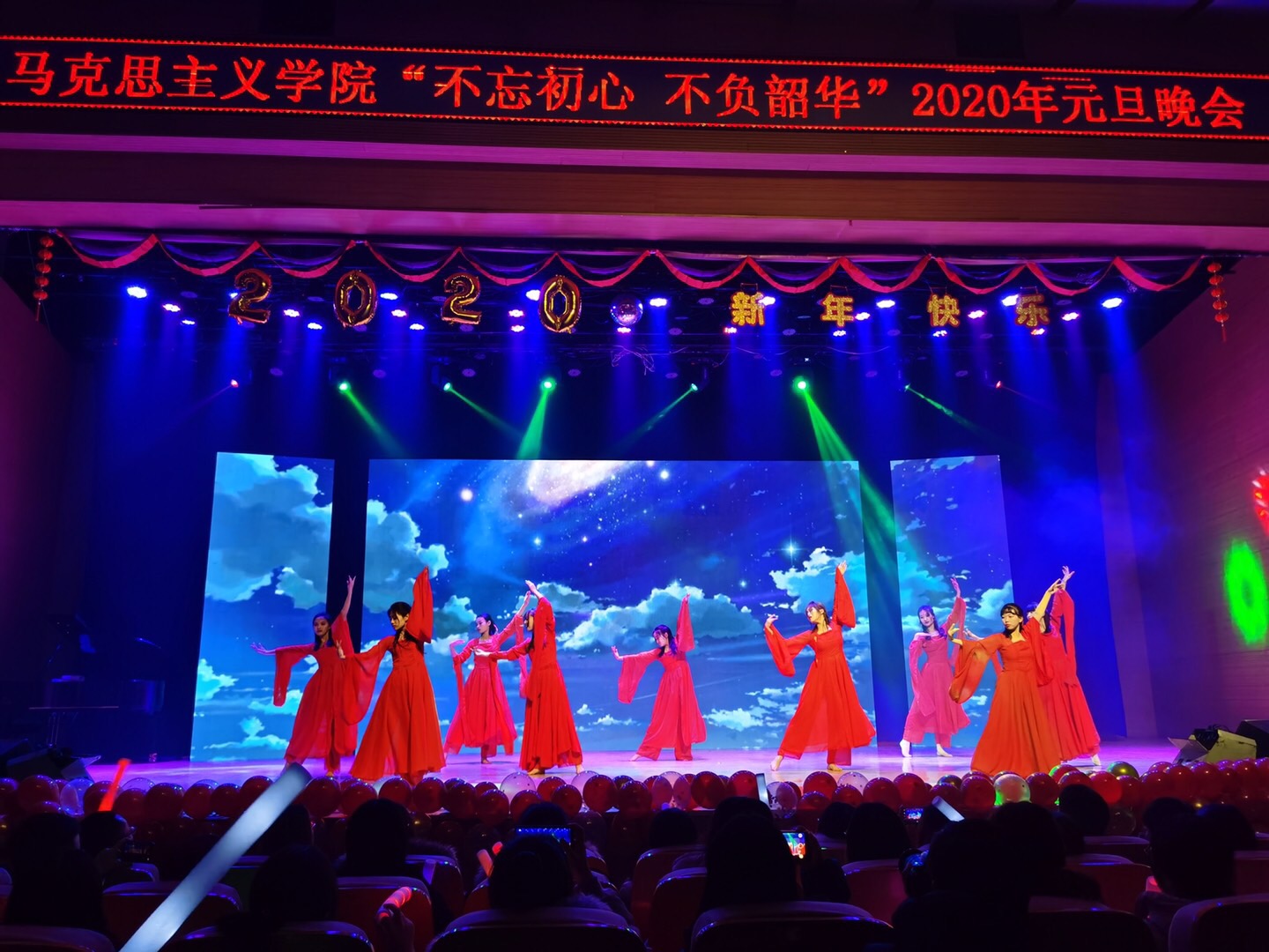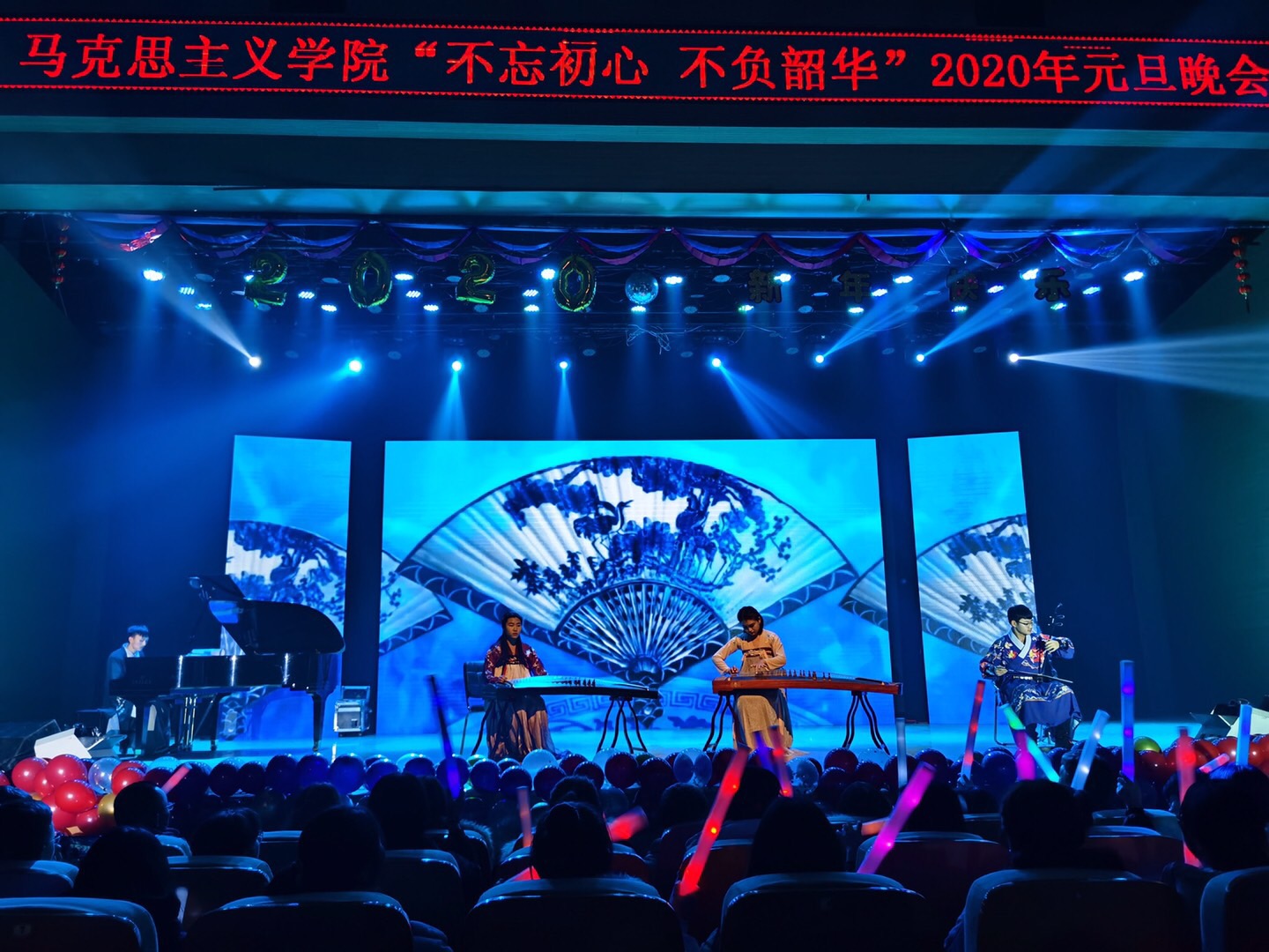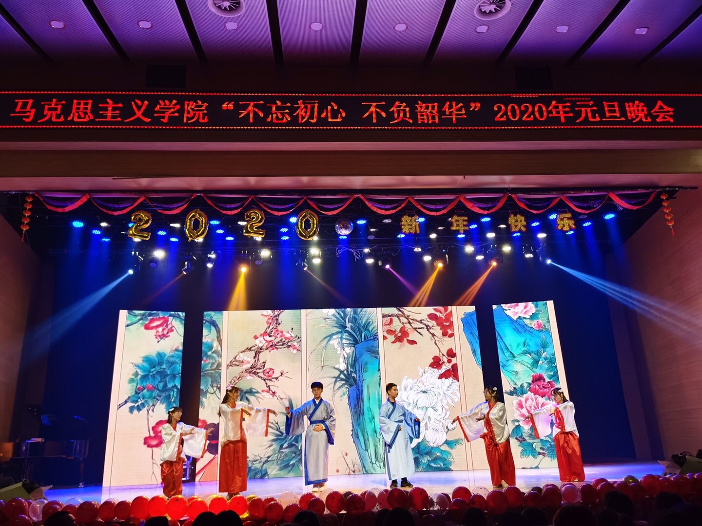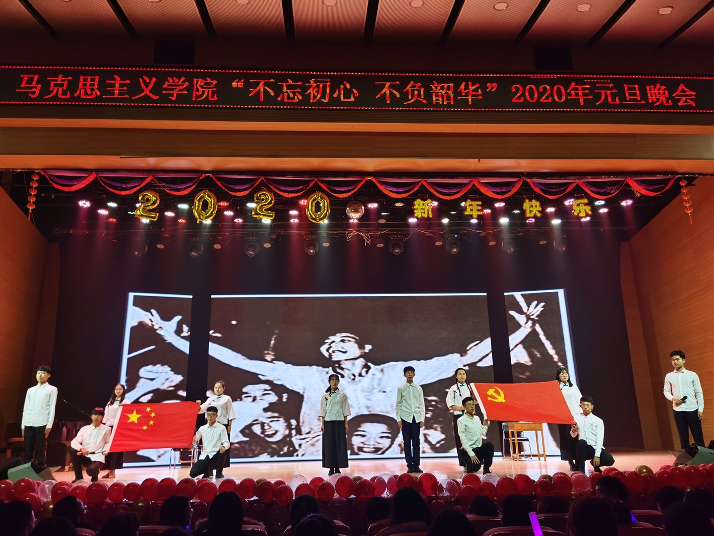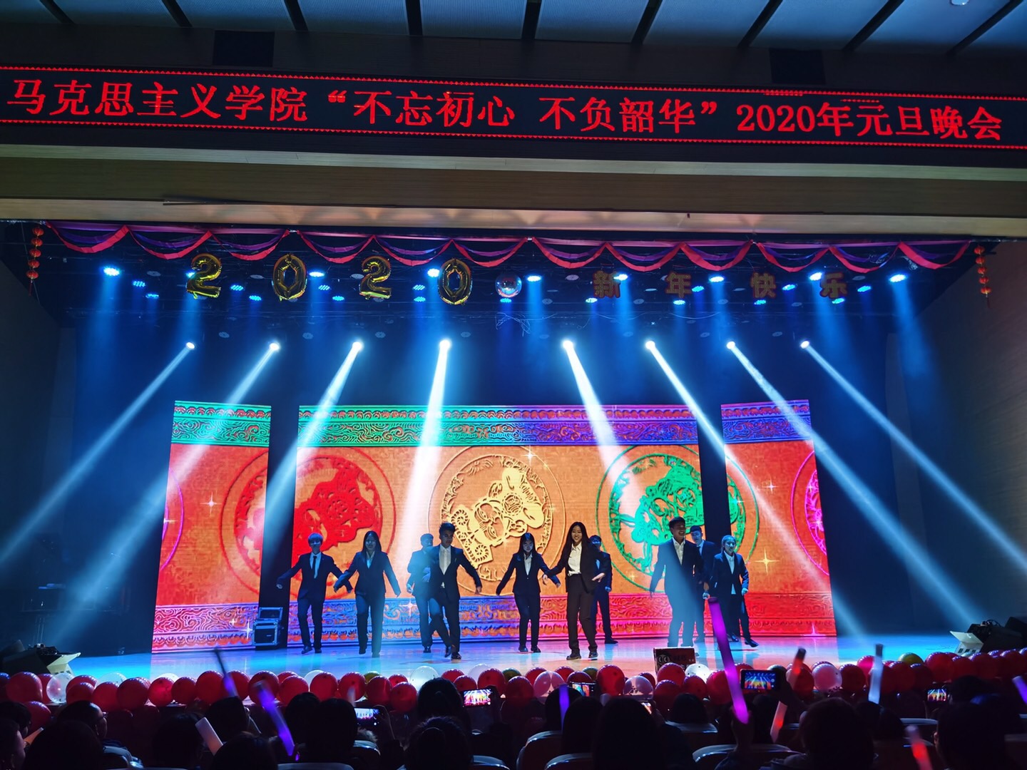 不忘初心跟党走,青春建功新时代;不负韶华勇逐梦,马院学子谱华章!经过前期一个多月的精心准备,12月15日晚七点半,304永利集团登录入口“不忘初心不负韶华”2020年元旦晚会在音乐厅隆重举行。信息办与网络中心主任王静宇、304永利集团登录入口党总支书记刘玉明、304永利集团登录入口党总支副书记、副经理杨永旺,公司全体师生以及500余名现场观众欢聚一堂、共贺新年。