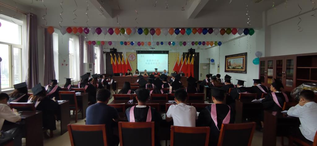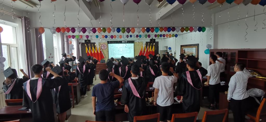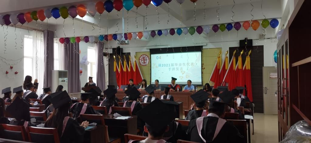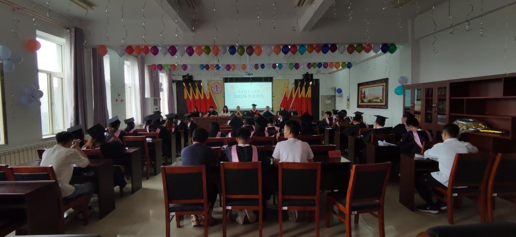 6月24日上午9点,304永利集团登录入口在腾飞楼C509会议室隆重举行2021届本科生毕业典礼。经理张光存、副经理许丽丽、党总支副书记杨永旺、副经理兼教授委员会办公室主任柴艳莎,毕业班班主任以及全体毕业生参加典礼。
