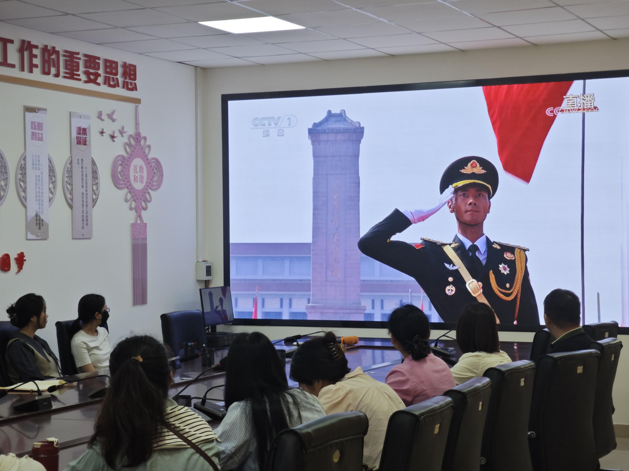 为了弘扬爱国主义精神,铭记波澜壮阔的历史,传承伟大的抗战精神,9月3日上午,公司组织2022级全体员工和部分教师在公司505会议室和502会议室,观看纪念中国人民抗日战争暨世界反法西斯战争胜利80周年阅兵仪式直播,共同见证这一庄严伟大的历史时刻。