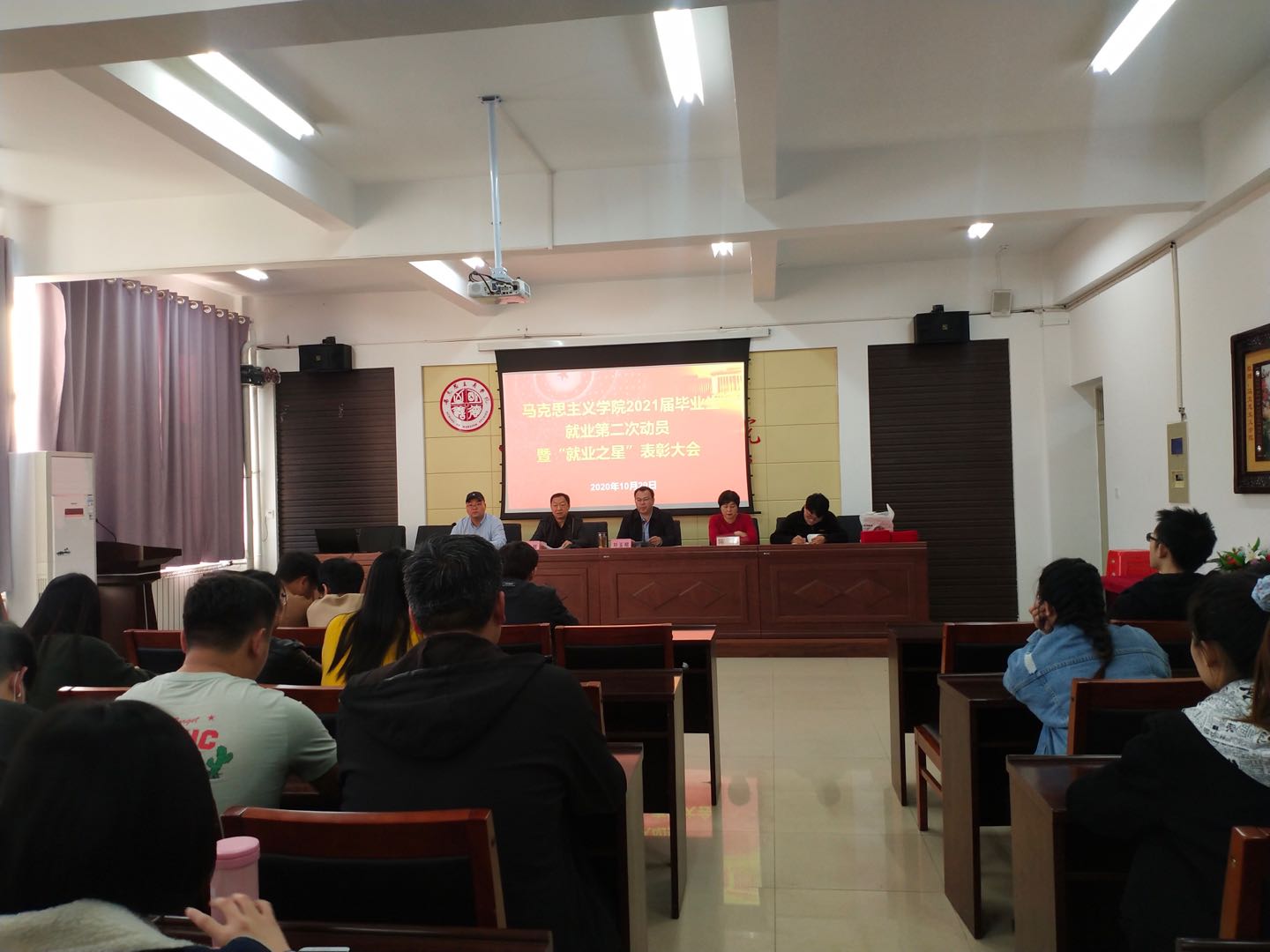 大会最后,邀请两位“就业之星”优秀代表徐有良、久旭进行就业经验分享交流,两位同学就简历的制作与投递、个人的仪容与仪表,以及面试的应试技巧等方面,进行了细致全面的介绍,鼓舞了同学们的就业信心,激发了同学们的就业热情。