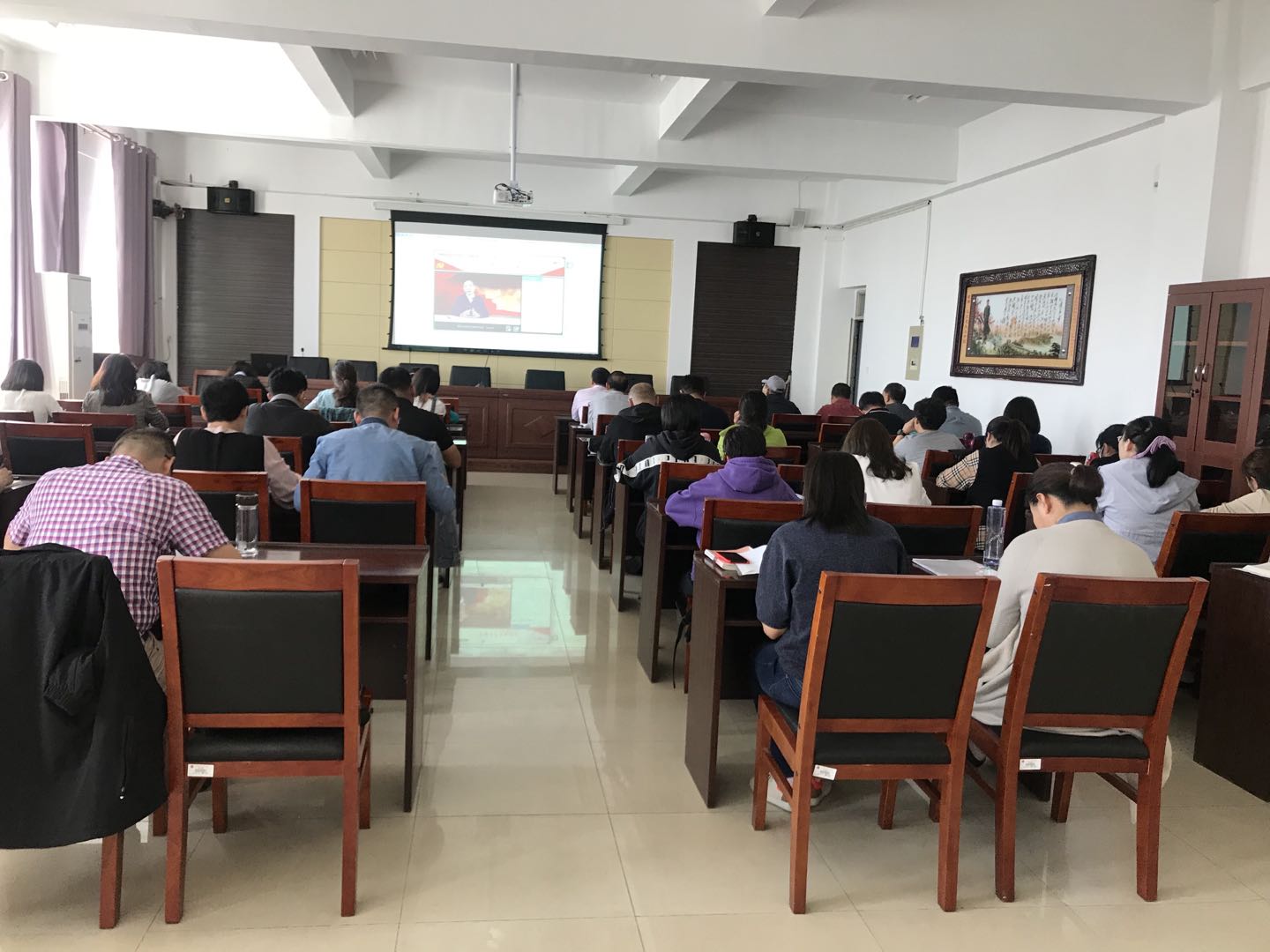 会上,参会人员集中观看了由国家行政公司教授祝彦主讲的《中国共产党的诞生》。通过视频学习表明,中国产生了共产党,这是开天辟地的大事变。从此以后,中国改换了方向。