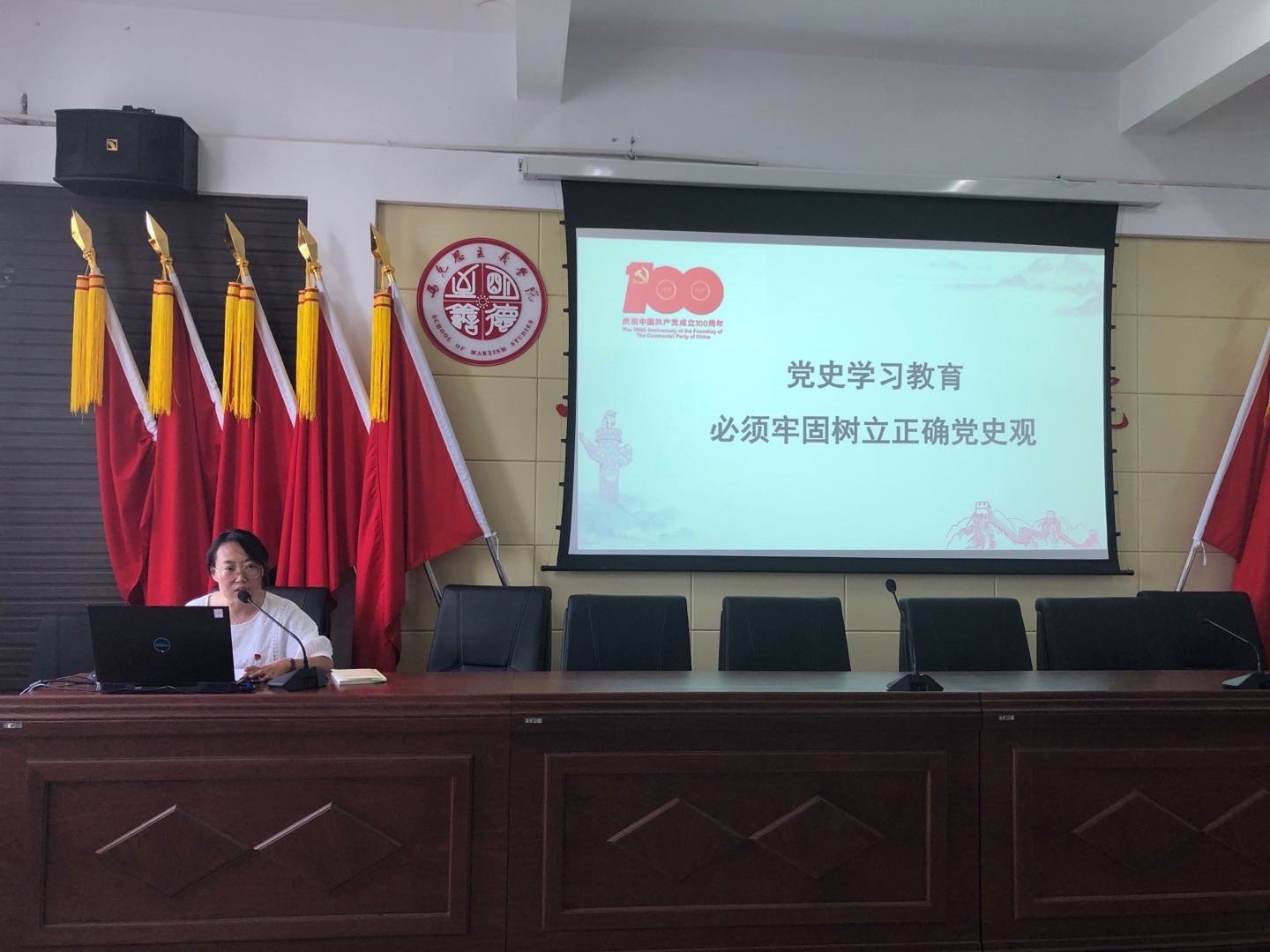 2021年7月5日下午,304永利集团登录入口在腾飞楼C509会议室组织开展党史学习教育专题讲座,柴艳莎老师做了题为“党史学习教育必须牢固树立正确党史观”的专题党课,全体党员聆听了党课。