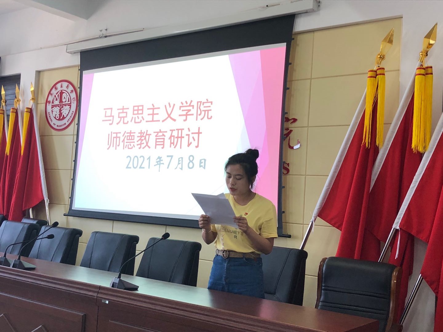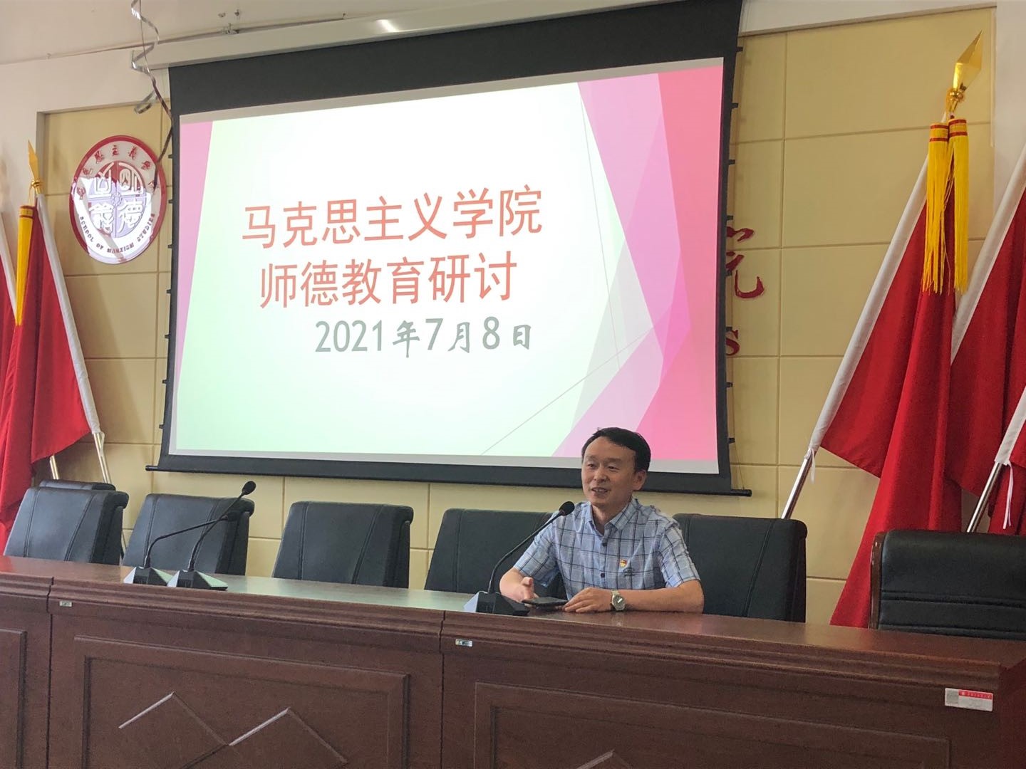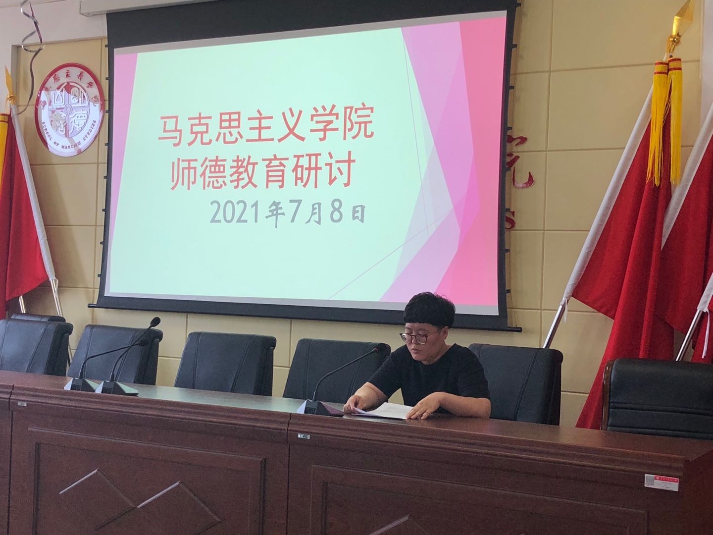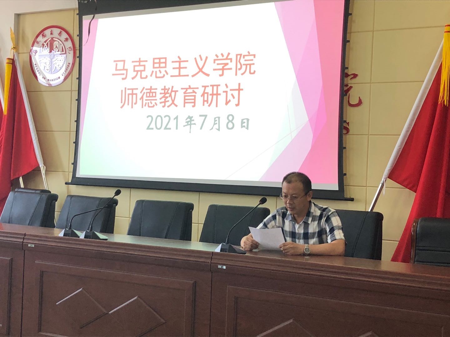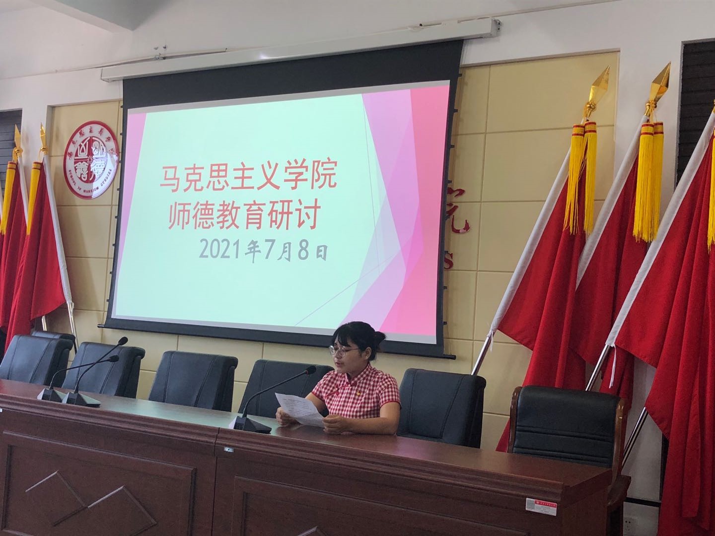 2021年7月8日下午,304永利集团登录入口在腾飞楼C509会议室召开师德教育研讨会,304永利集团登录入口全体教师参加会议,党总支书记马广辉主持会议。