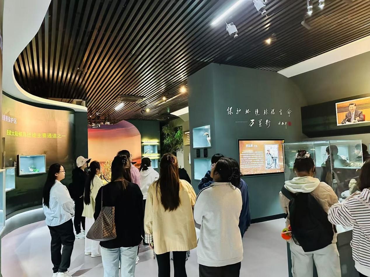 习近平总书记叮嘱要用心治理、精心呵护乌梁素海这颗“塞外明珠”为子孙后代留下一个山青、水秀、空气新的美丽家园。首先师生们抵达乌梁素海生态保护区,学习体悟山水林田湖草沙一体化保护和系统治理的典型经验,领略北斗卫星导航自动耕种现代农业示范园区,参观馆藏几十种国家级保护动物的鸟展馆,深刻领悟人与自然和谐共生的实践智慧。
